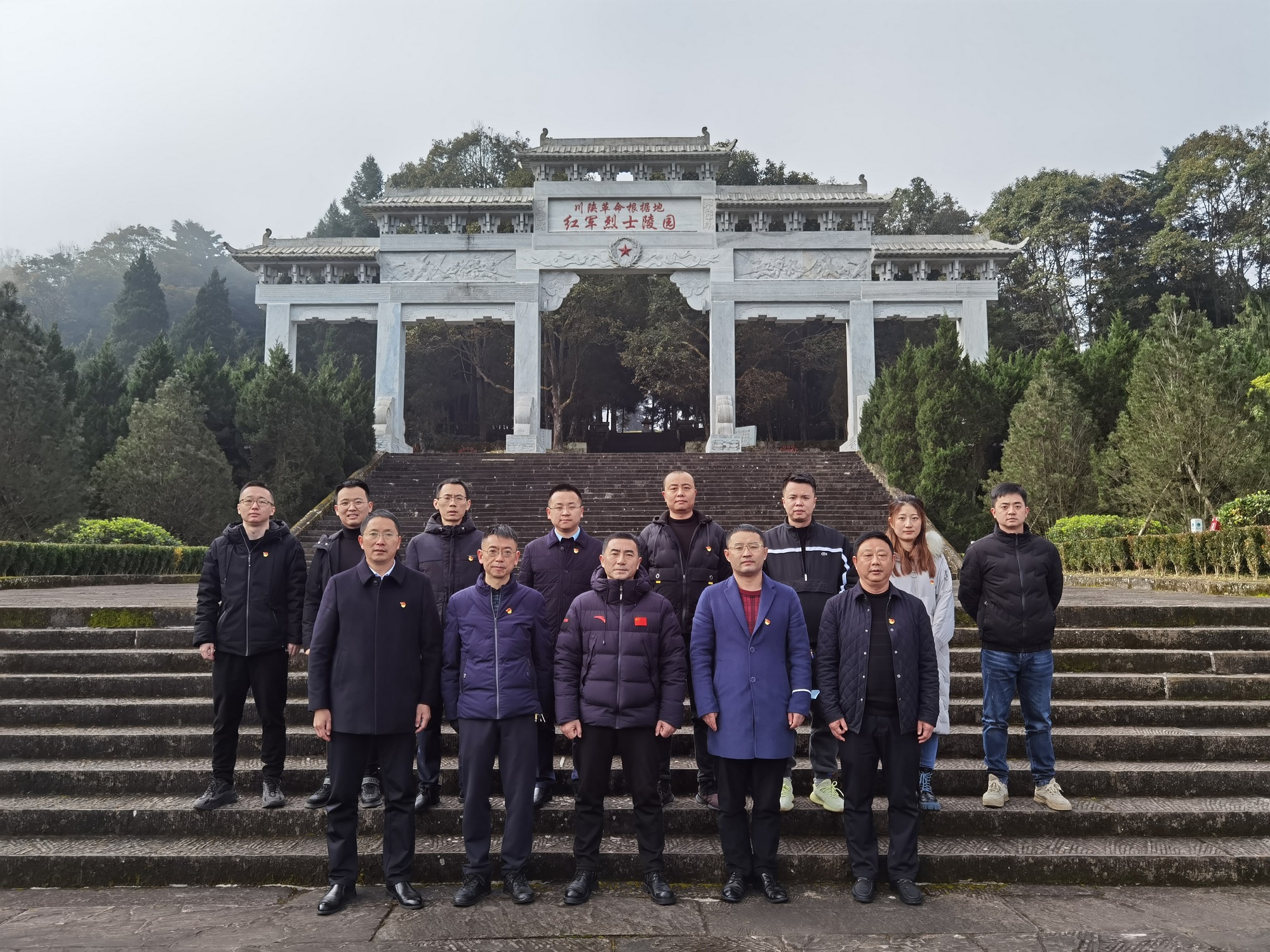 在通江縣王坪烈士陵園,從“鐵血丹心”廣場拾級而上,公司黨委副書記、副總經理郎波、公司黨委副書記、紀委書記陳雷、公司黨委委員、副總經理袁本松率公司黨員、入黨積極分子一行來到烈士紀念碑前,莊嚴肅穆的肅立,默哀鞠躬,向長眠于此的革命英烈表達無盡的哀思和敬仰。郎波代表公司黨委向革命先烈敬獻花籃,機關黨支部書記葉發科帶領黨員同志在鮮紅的黨旗前,重溫了入黨誓詞。