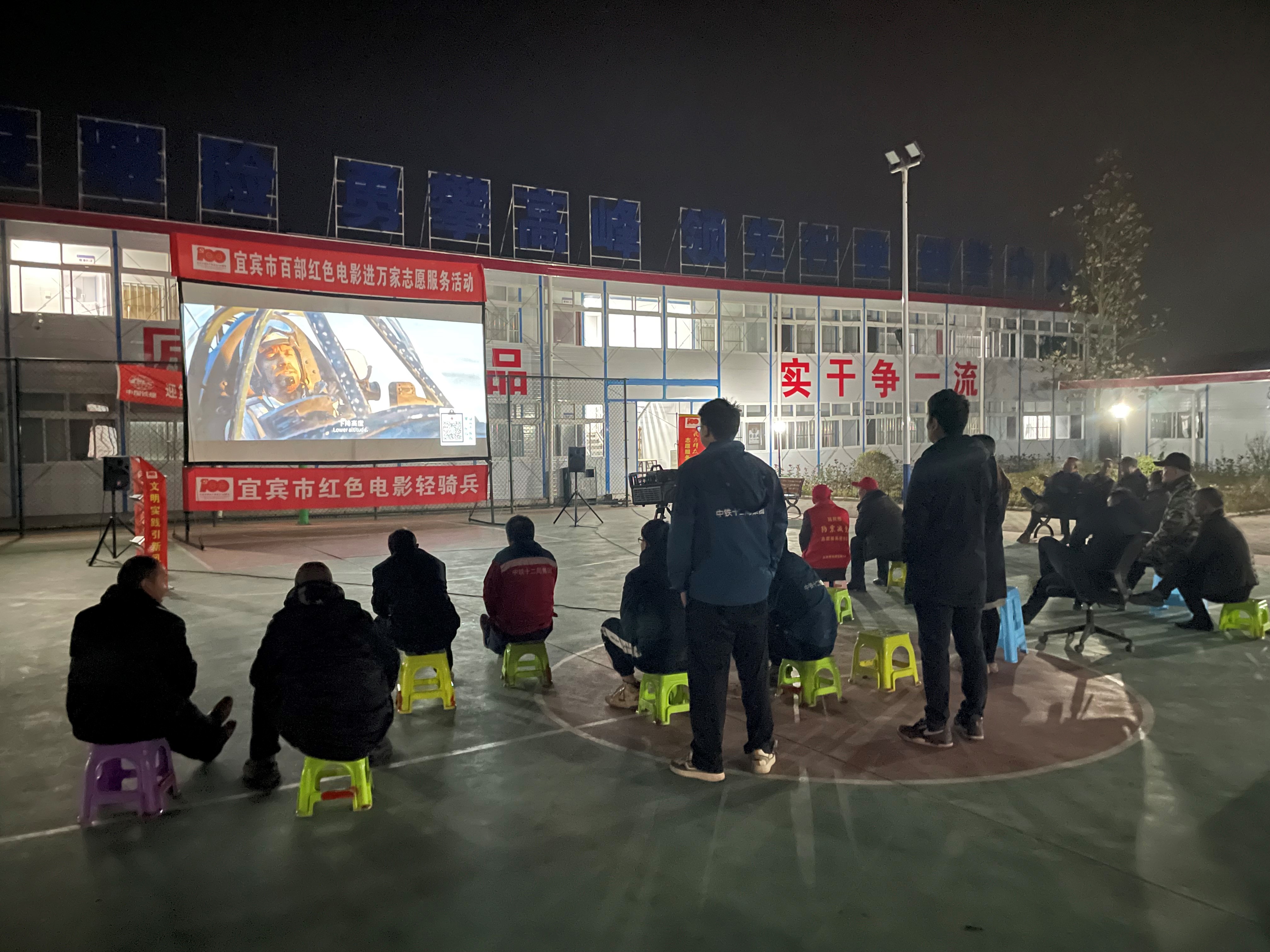 早在臨時黨支部成立之初,黨員們便在農民工群體中收集小心愿,其中反映最多的是想觀看一場電影,結合工地實際情況,黨支部決定為組織一場“壩壩電影”,觀看影片《金剛川》。觀看紅色電影,讓堅守在建設一線的工友們共同參與到黨史學習教育中,共同重溫黨的光輝歷程,接受紅色文化洗禮。