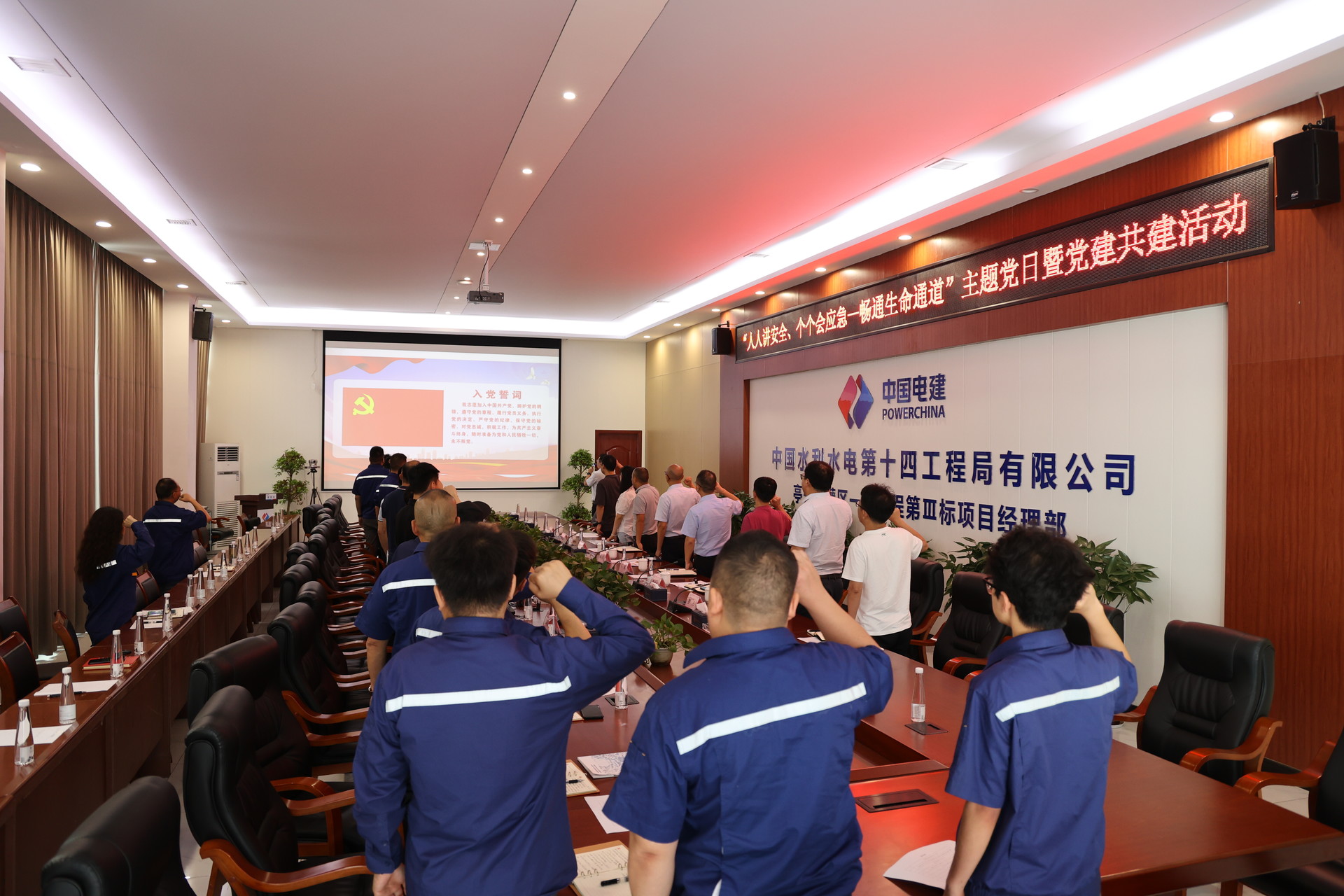 活動(dòng)伊始,黨支部書記帶領(lǐng)全體黨員面對(duì)黨旗重溫了入黨誓詞。隨后,全員深入學(xué)習(xí)領(lǐng)會(huì)《習(xí)近平總書記關(guān)于應(yīng)急管理的安全生產(chǎn)重要論述和重要指示批示精神》的摘編;Ⅲ標(biāo)聯(lián)合體安全總監(jiān)帶領(lǐng)學(xué)習(xí)解讀了新《安全生產(chǎn)法》;全體干部職工認(rèn)真觀看了“安全生產(chǎn)月”主題宣傳片、《安全生產(chǎn)責(zé)任在肩》警示教育片。