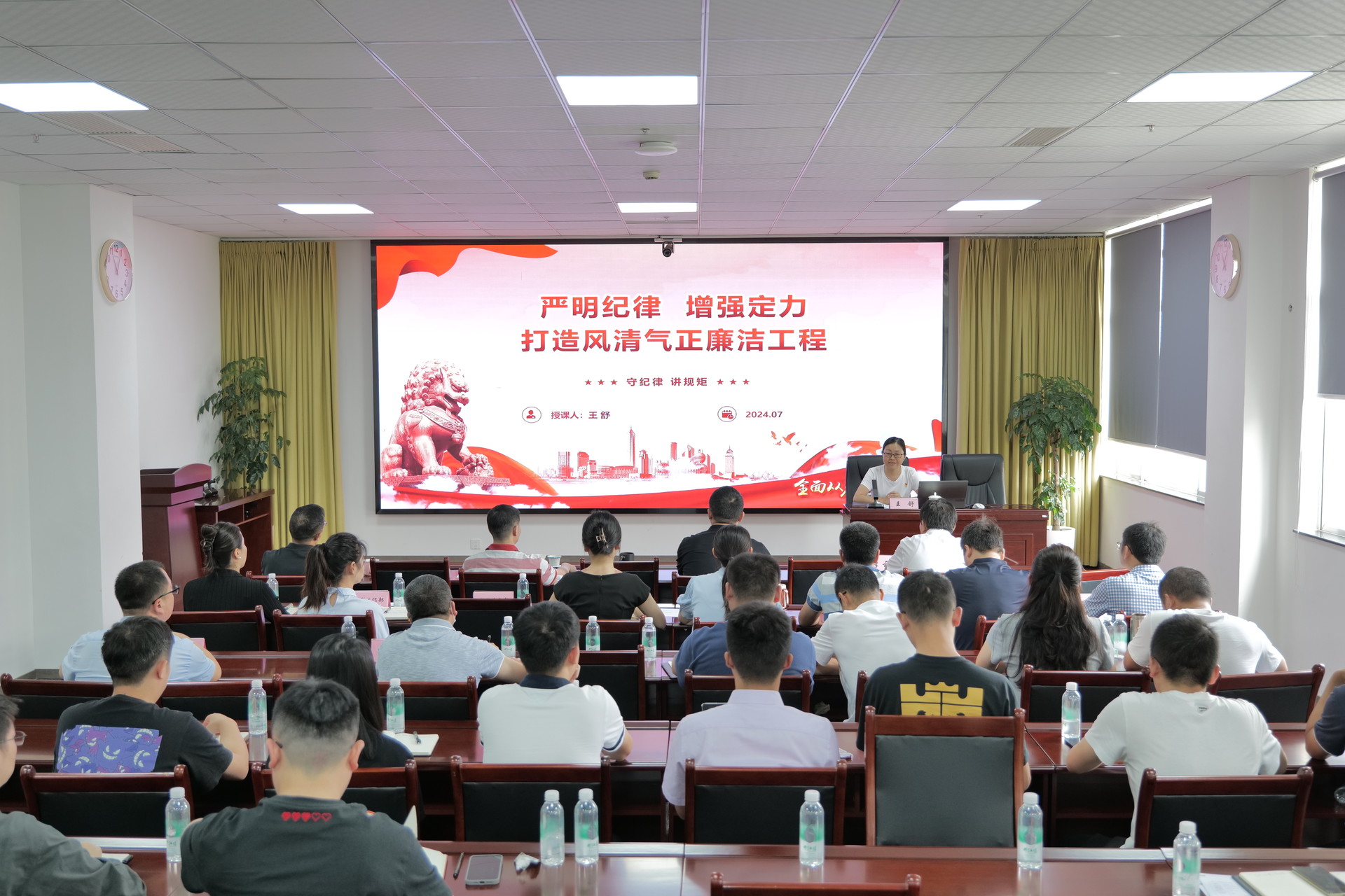 7月4日,集團副總經理王舒到引大濟岷公司以《嚴明紀律增強定力打造風清氣正廉潔工程》為題從理論學習錘煉黨性、嚴明紀律錘煉作風、黨史中汲取力量三個方面,結合行業、公司特點,為公司全體干部職工上了一堂生動深刻的專題黨課。
