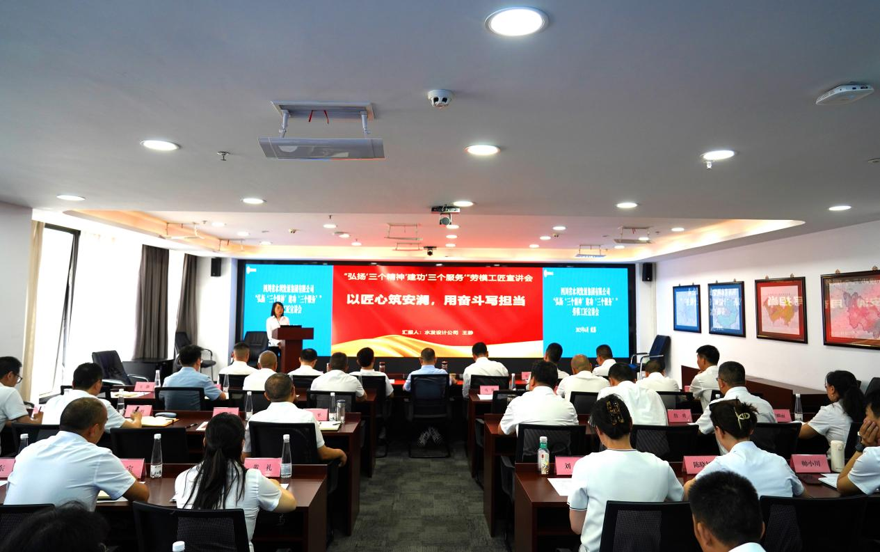 為慶祝中華全國總工會成立100周年,深入貫徹習近平新時代中國特色社會主義思想,結合省總工會和水電工會職工思想素質提升工程,集團工會于6月17日在總部舉辦了“弘揚‘三個精神’ 建功‘三個服務’”四川水發集團勞模工匠宣講會。會議由集團黨委委員、職工董事、工會主席唐克飛主持,集團黨委書記、董事長王華出席會議并作講話。